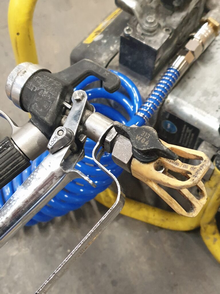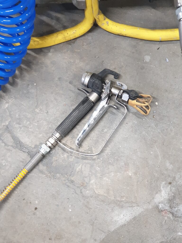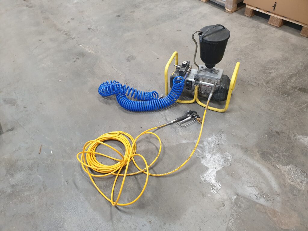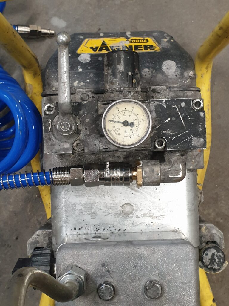 Reparirana WAGNER pumpa (Cobra 40-10 / GM1-530) visokog pritiska za nanošenje zastitnih tečnih premaza na konstrukcione elemente mašina, objekata, gradjevisnkih temelja, drvenih elemenata itd…… Pumpa je kompaktnog dizajna, sa 5L levkom koji omogućava brzo čišćenje i zamenu boje recirkulacionim režimom. Pneumatski pogonjenja multiplikuje 1 bar ulaznog komprimovanog vazduha i daje izlazni pristisak boje na pištolju do 40 bar. Maksimalni izlazni pritisak boje ovako konfigurisanog sistema je 270 bar, sa velikim izborom dizni različitog ugla i promera mlaza farbanja za pištolj GM1 – 530.
