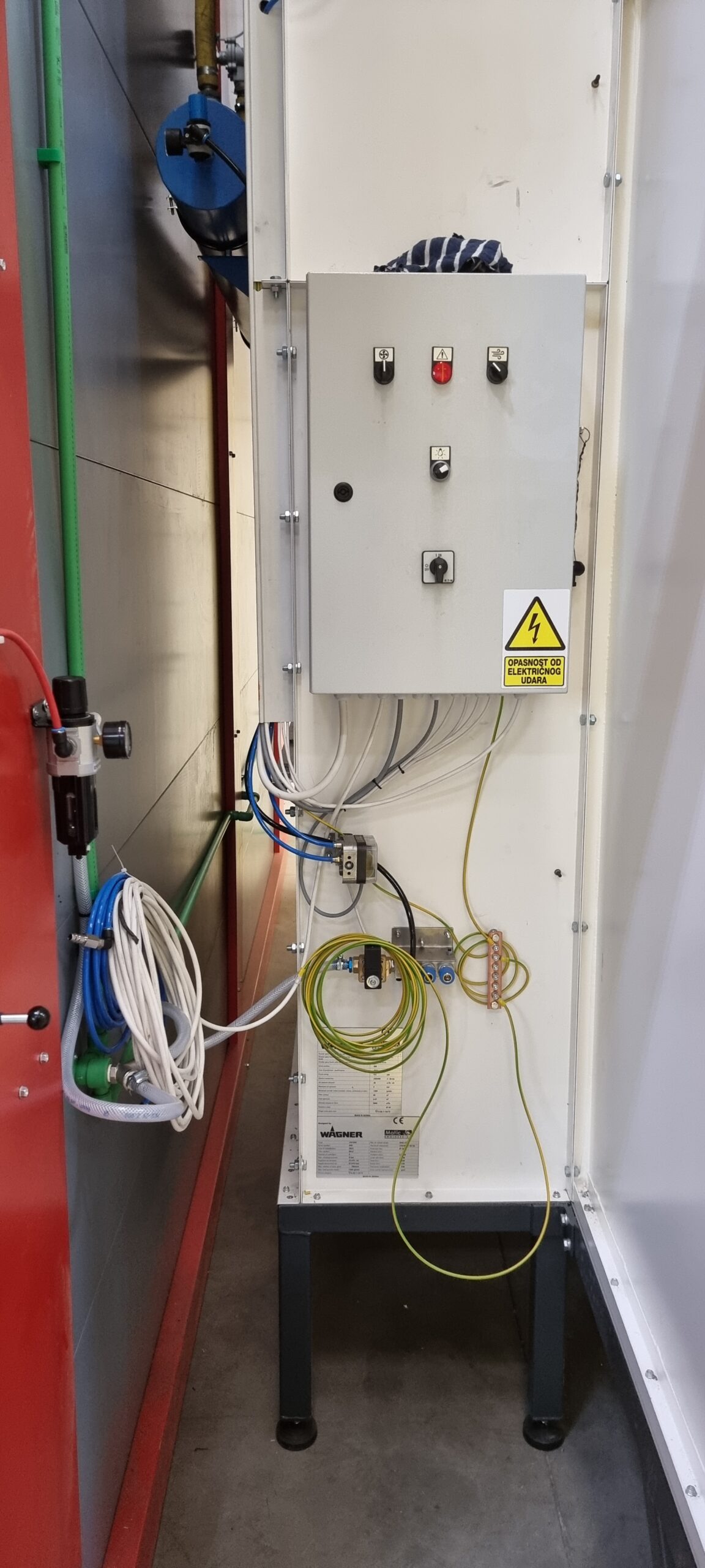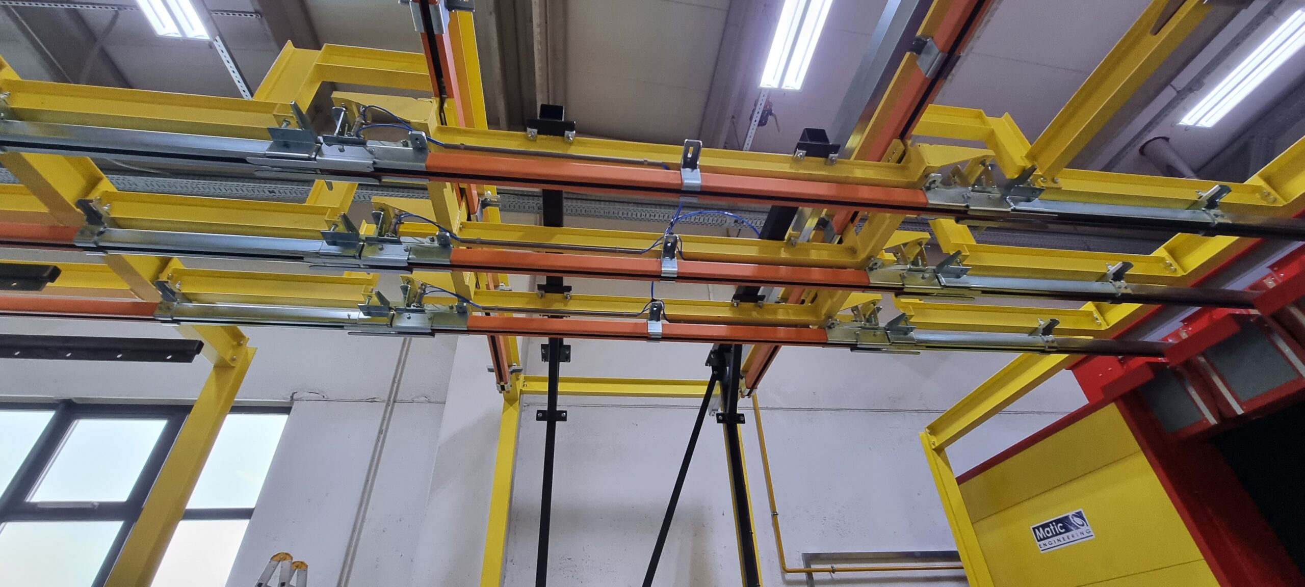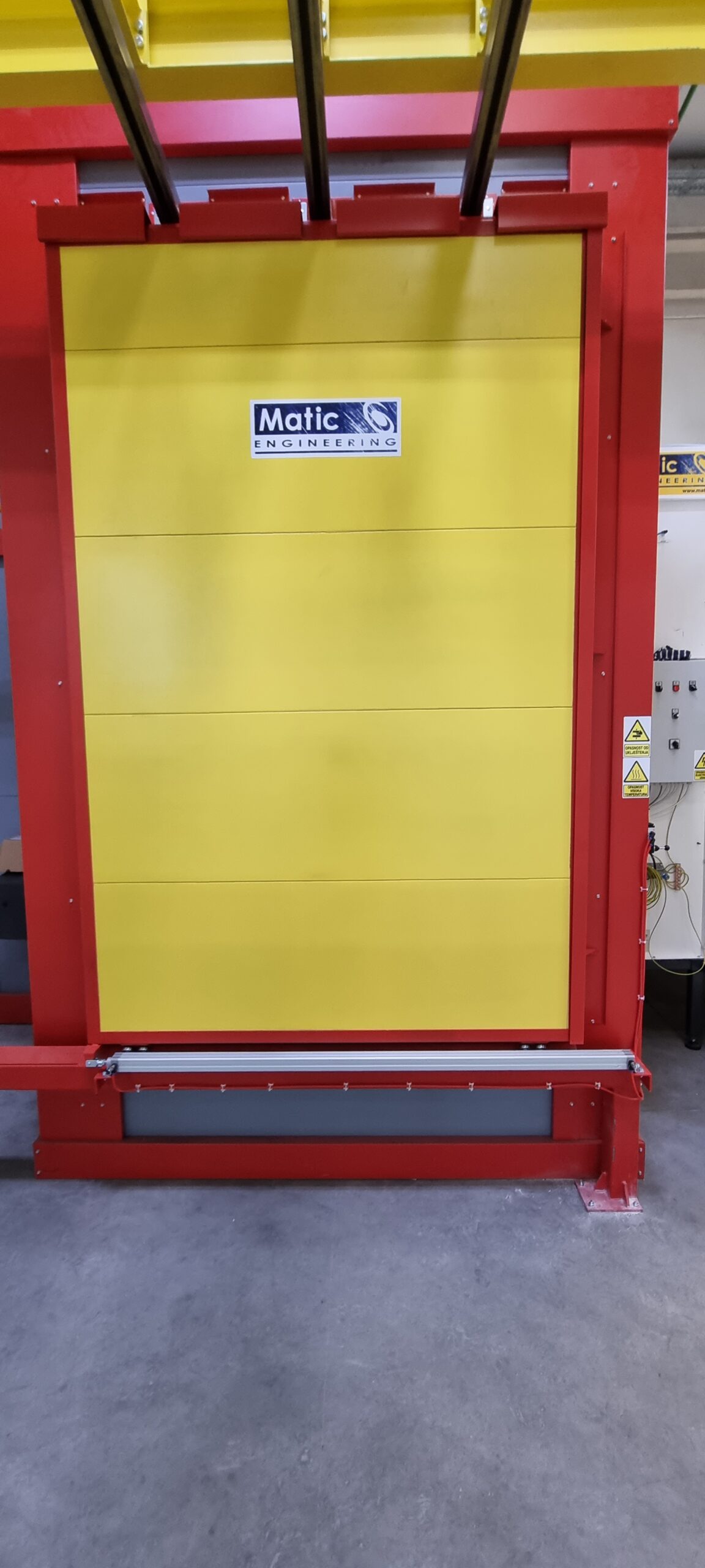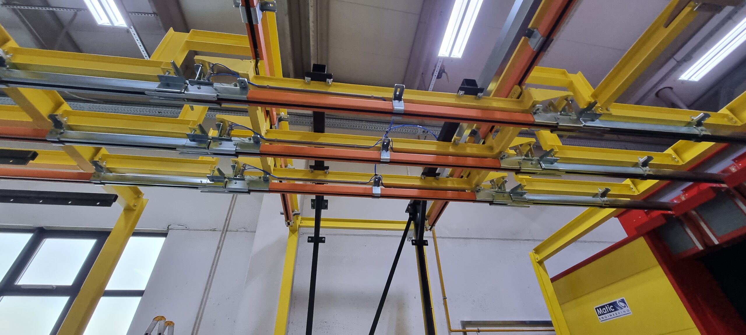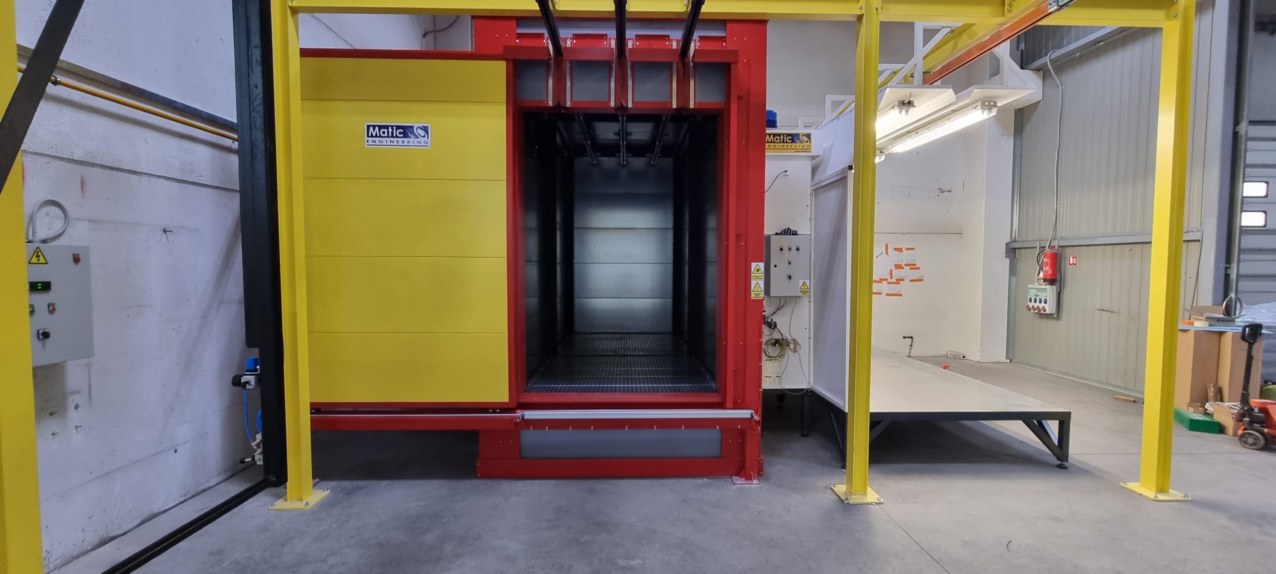 Ručno postrojenje za elektrostatičko farbanje prahom. Peć za polimerizaciju na priordni gas sa maksimalnim mogućim dimenzijama radnog komada od 4500 x 2000 x 1600 mm. WAGNER Basic 8000 kabina za farbanje bez rekuperacije praha i uređaj za farbanje WAGNER PRIMA Sprint X AirFluid. Sve celine objedinjuje ručni šaržni trasnportni sistem sa translatornim i linijskim kretanjem. Šaržer se kontroliše komprimovanim vazduhom i pomoću pneumatskih zabravljivača se pozicionira na željenje pozicije. Maksimalna nosivost jedne nosiljke je 300 kg. Proizvođač transporta je Railtehniek GmbH iz Holandije.