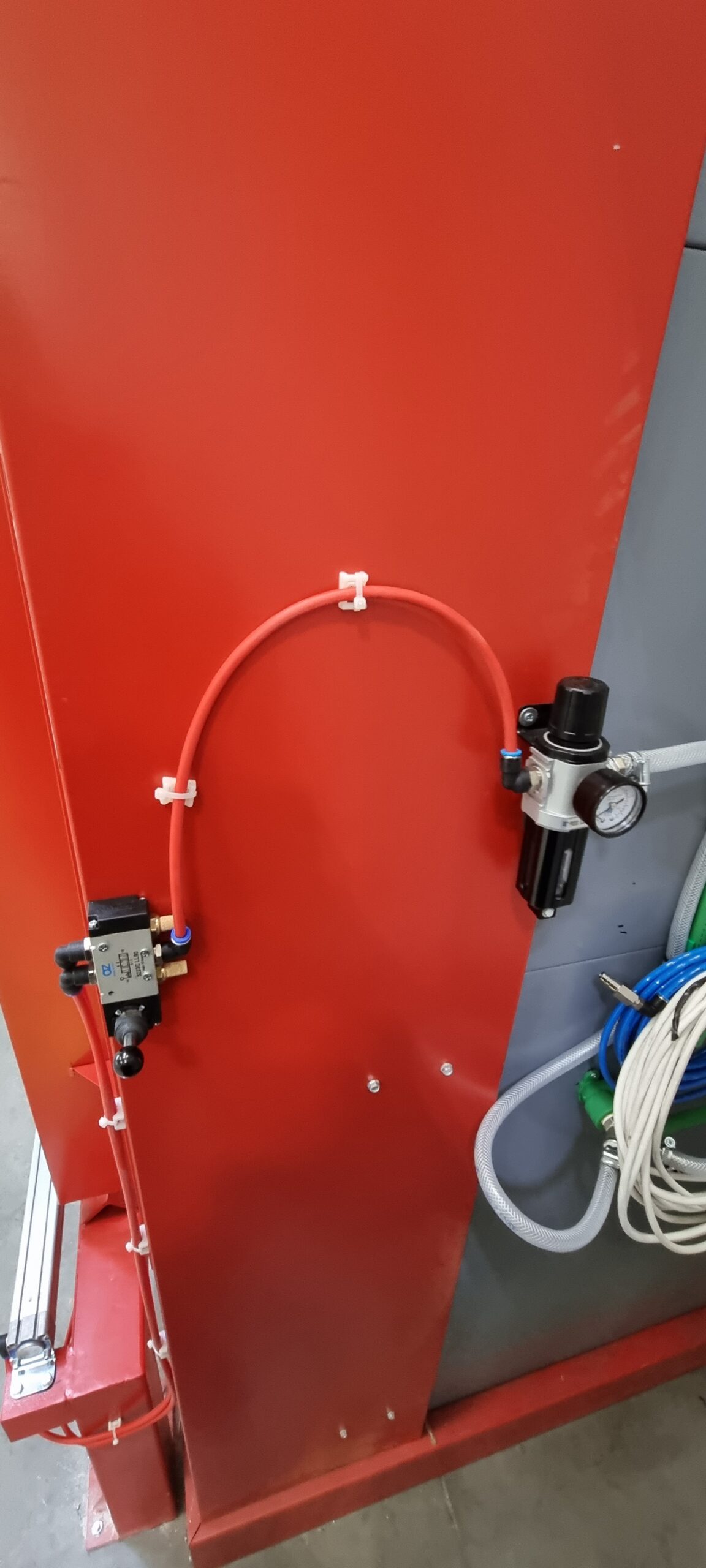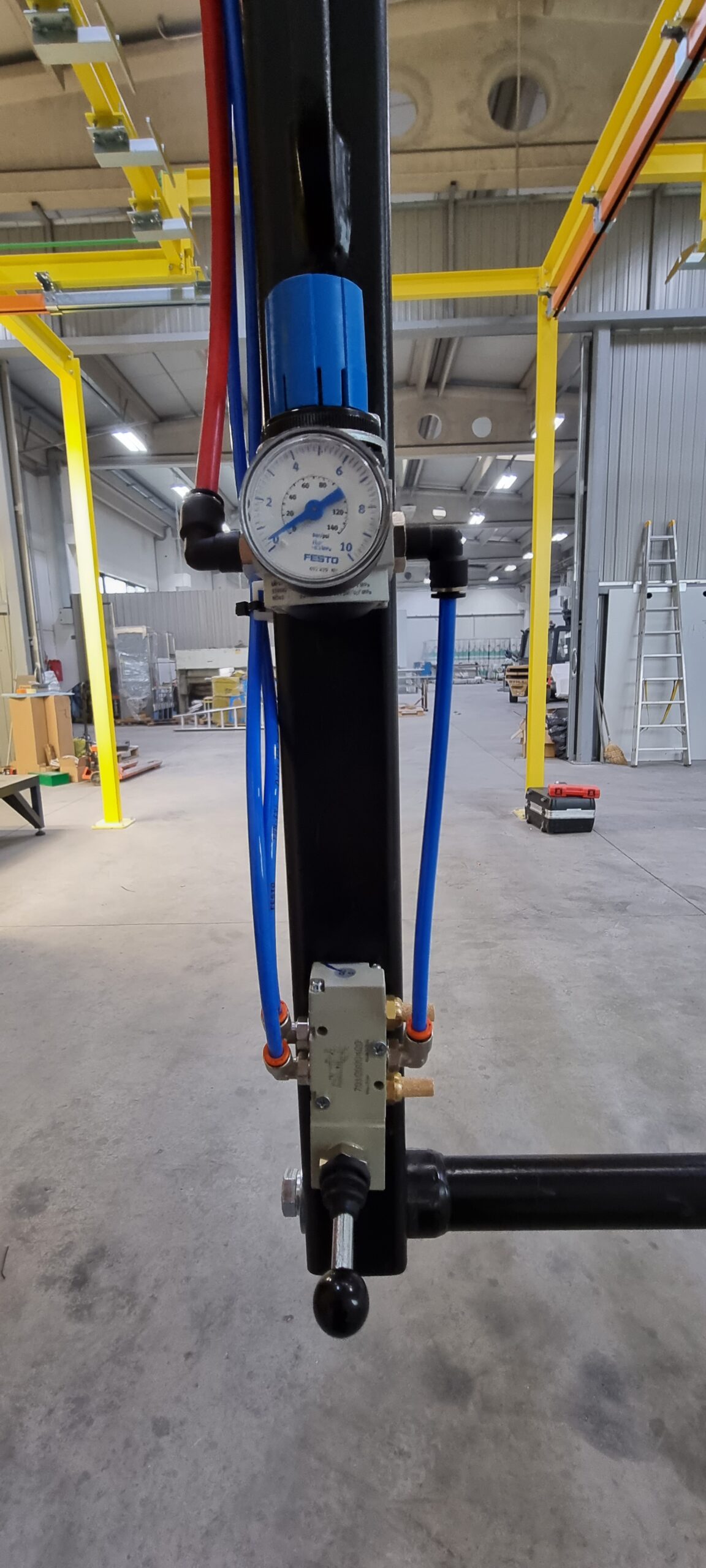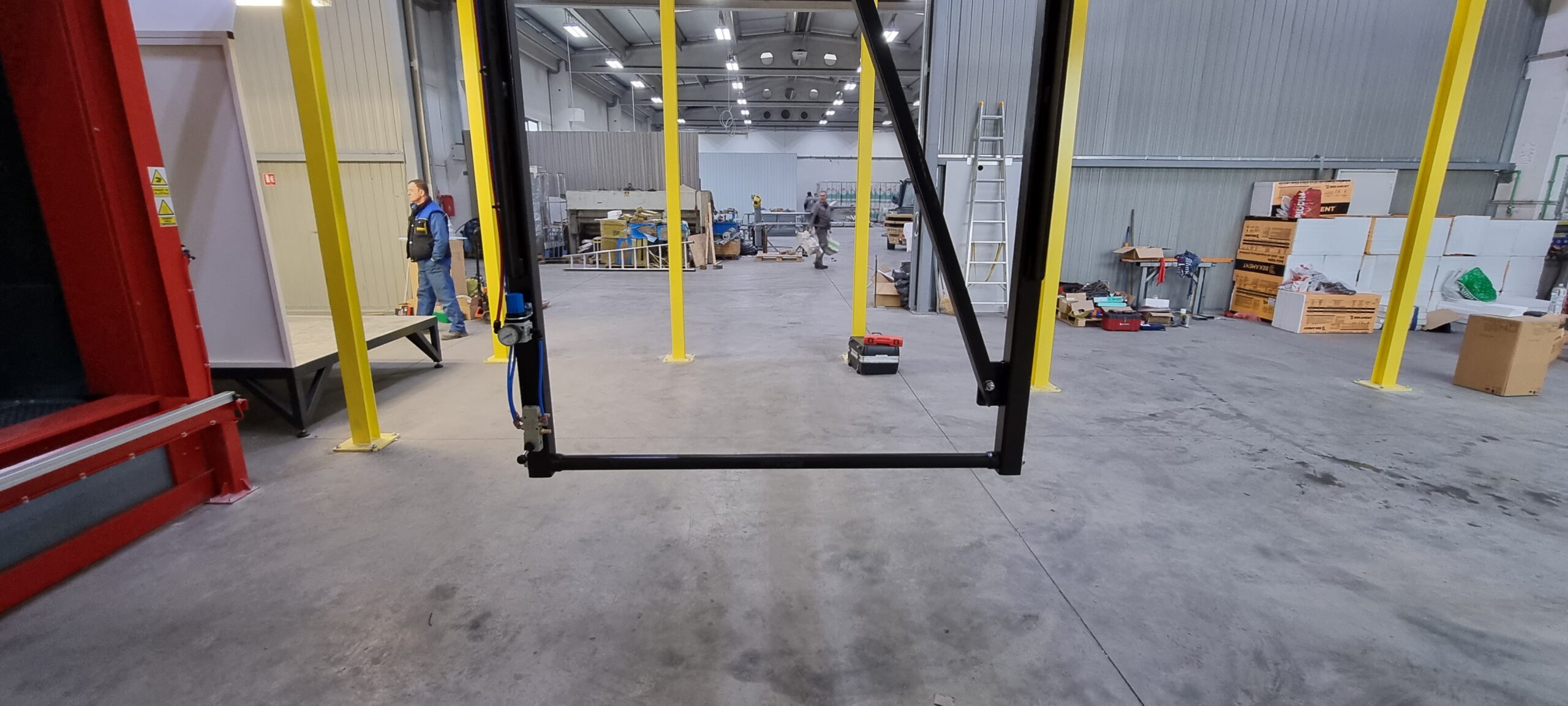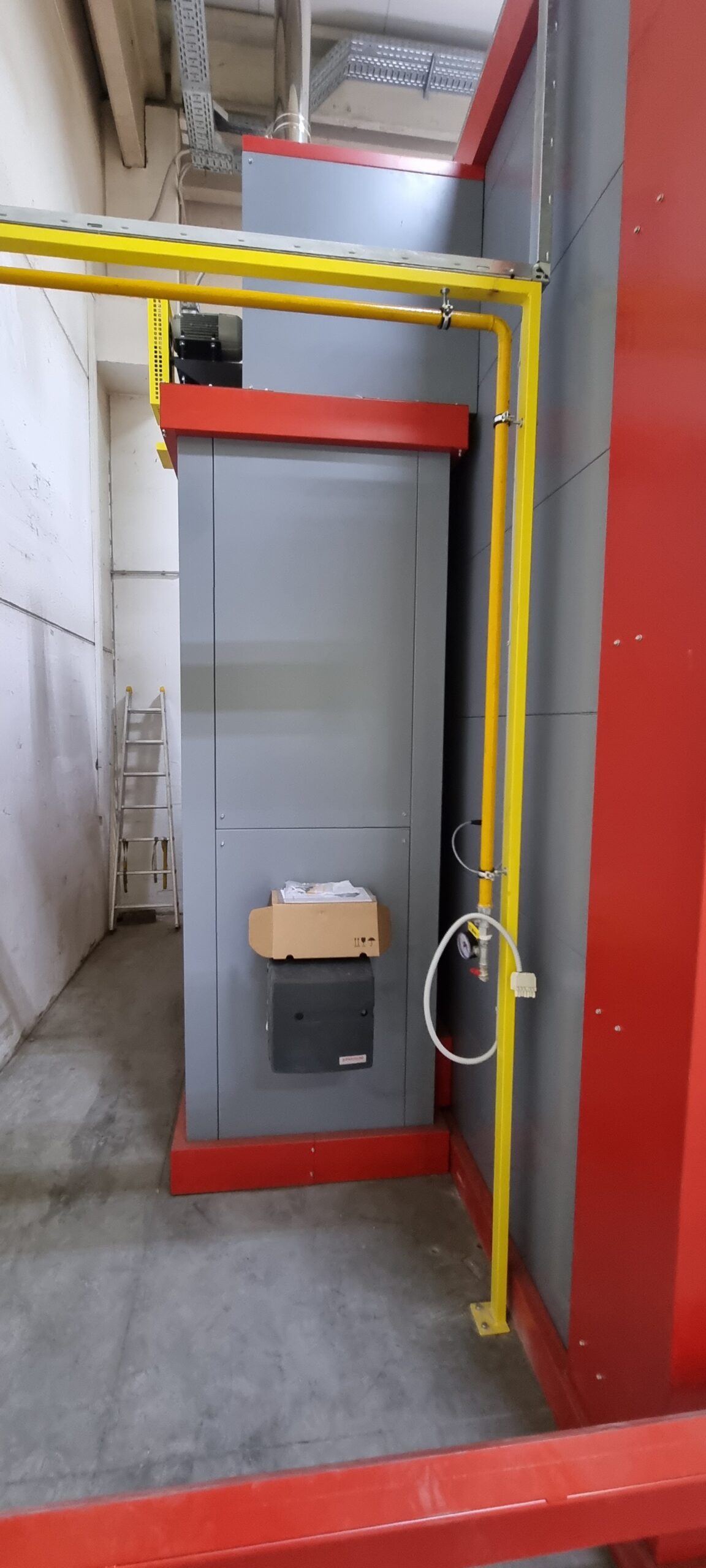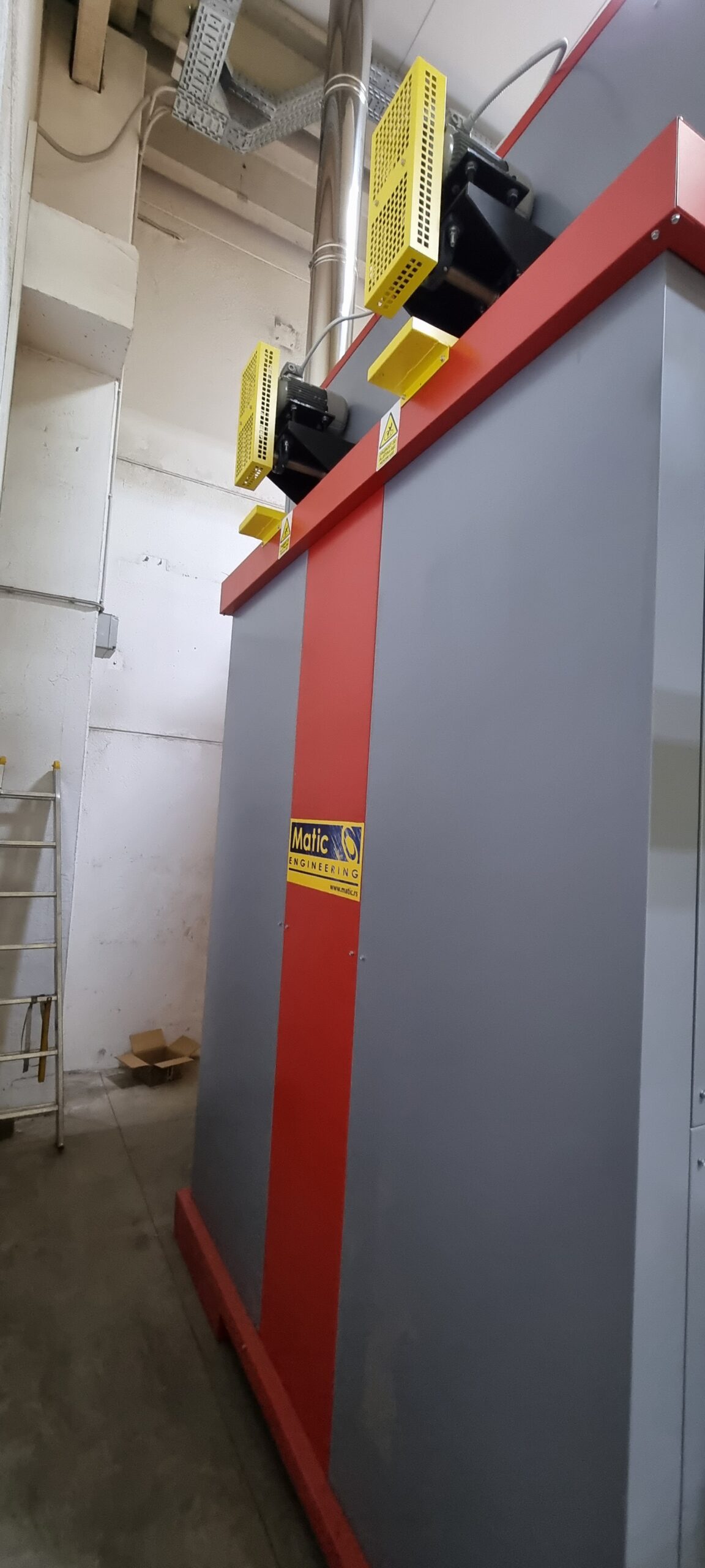 Ručno postrojenje za elektrostatičko farbanje prahom. Peć za polimerizaciju na priordni gas sa maksimalnim mogućim dimenzijama radnog komada od 4500 x 2000 x 1600 mm. WAGNER Basic 8000 kabina za farbanje bez rekuperacije praha i uređaj za farbanje WAGNER PRIMA Sprint X AirFluid. Sve celine objedinjuje ručni šaržni trasnportni sistem sa translatornim i linijskim kretanjem. Šaržer se kontroliše komprimovanim vazduhom i pomoću pneumatskih zabravljivača se pozicionira na željenje pozicije. Maksimalna nosivost jedne nosiljke je 300 kg. Proizvođač transporta je Railtehniek GmbH iz Holandije.