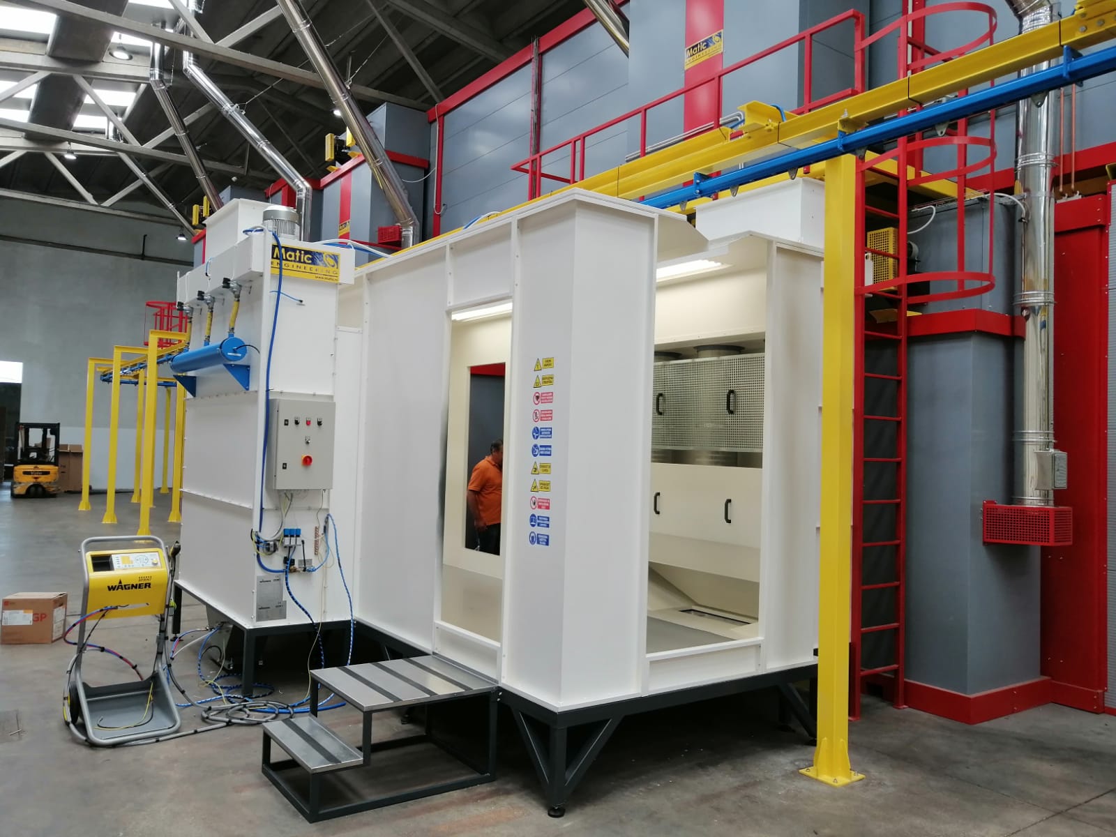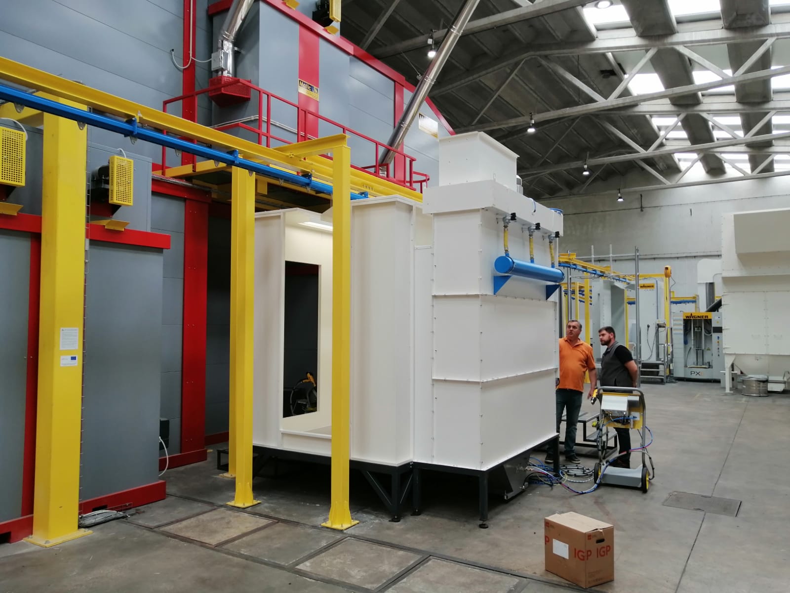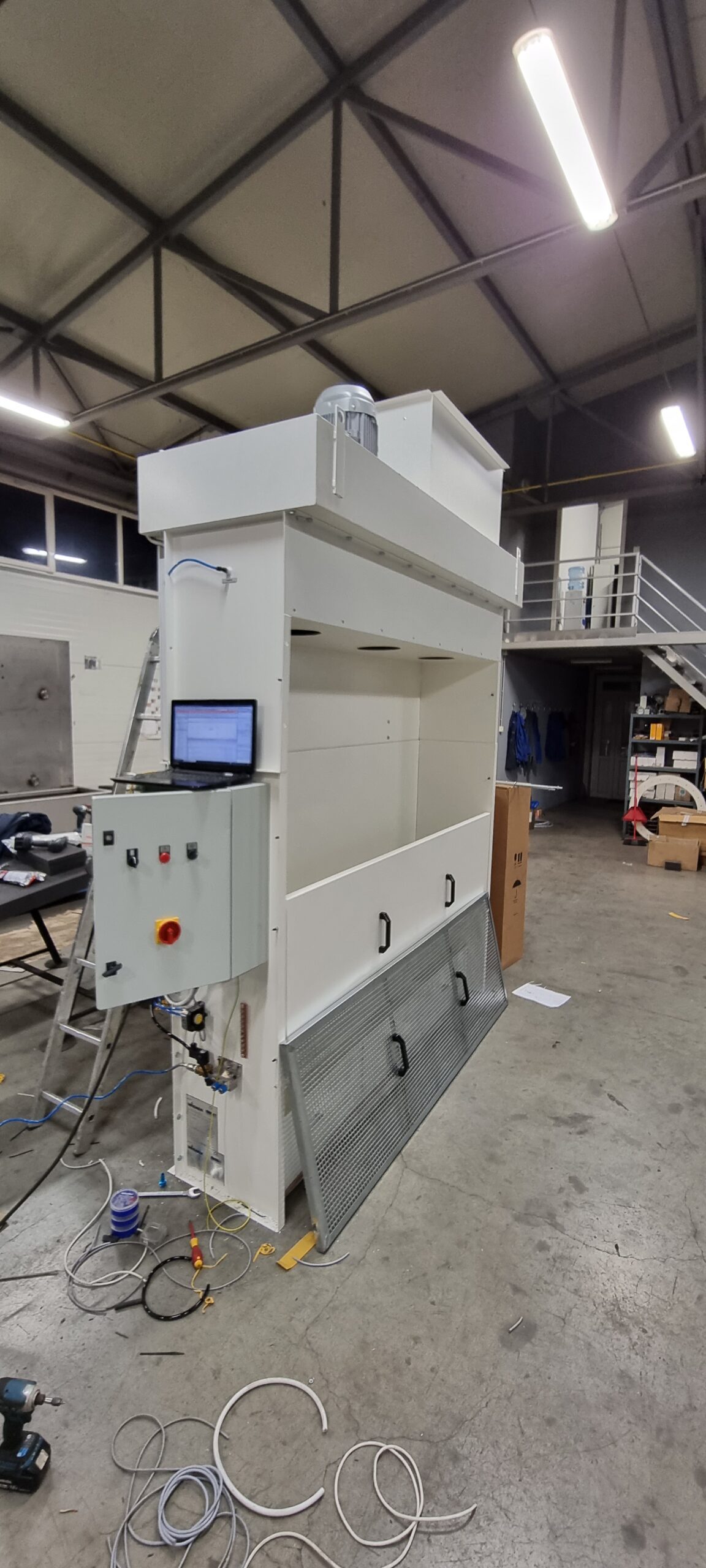Od 2021. zvanično smo dobili lincencu za proizvodnju kabina za praškasto farbanje. Ovaj model kabina namenje je primarno za ručna farbanja, ali po zahtevu se mogu uradite različite implementacije ove kabine: poluzatvorena, prolaznog tipa, mogućnost rekuperacije praha, itd …. Ova kabina se takođe može koristiti u sistemi za ventilaciju prašine od sačmarenja u specijalnoj izradi za ovakvu upotrebu.