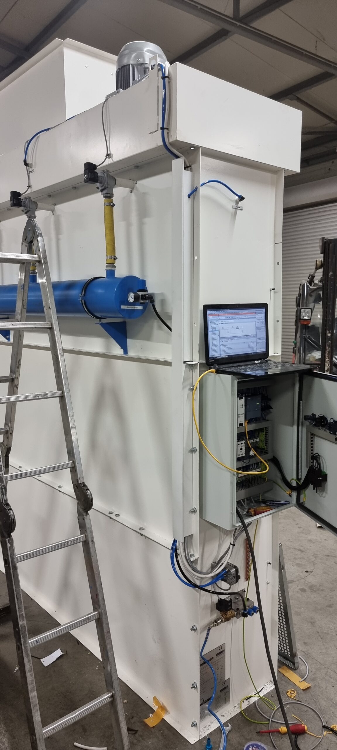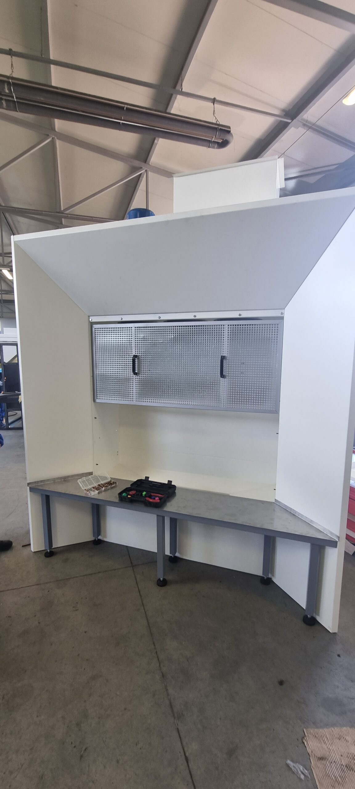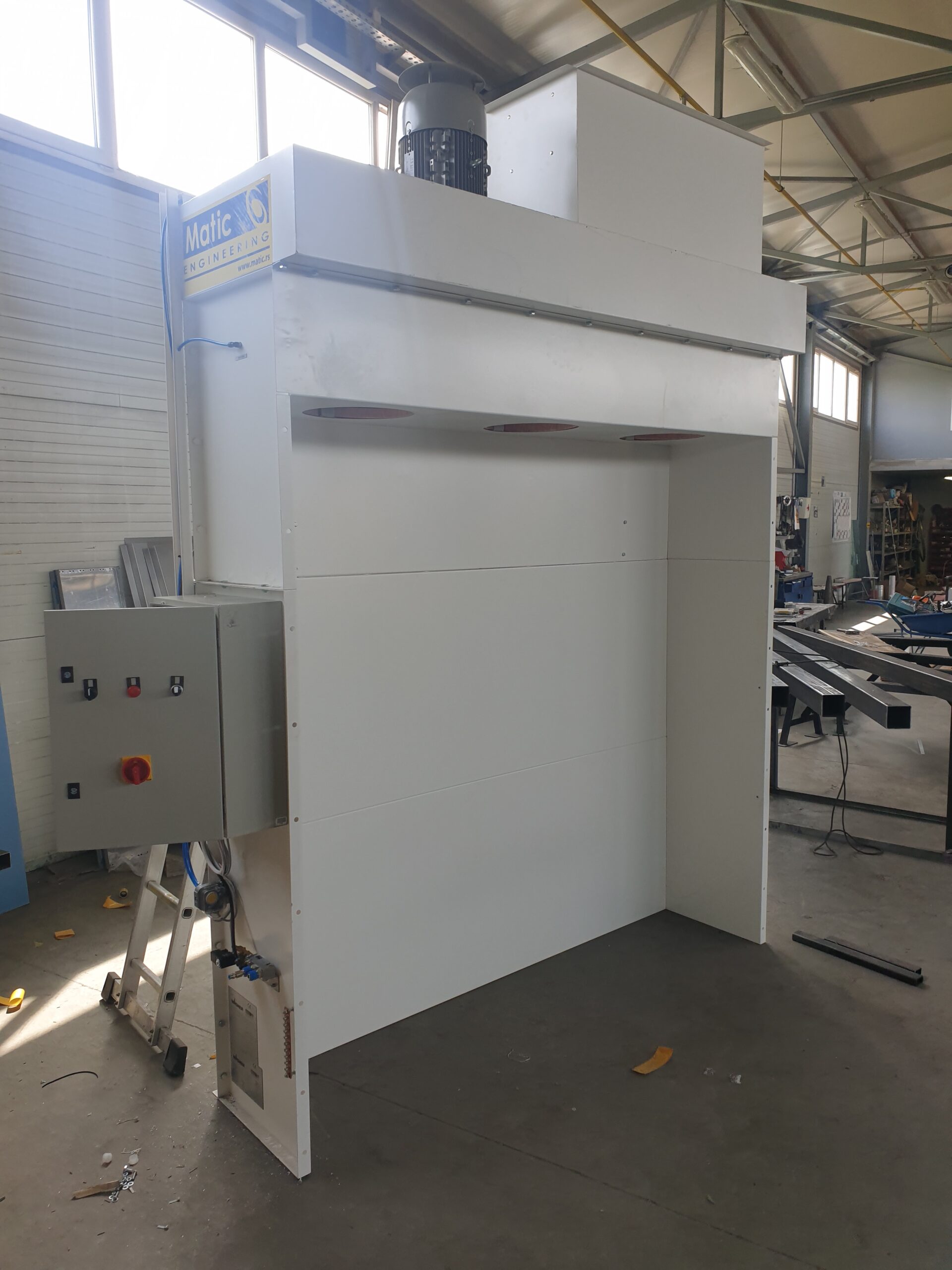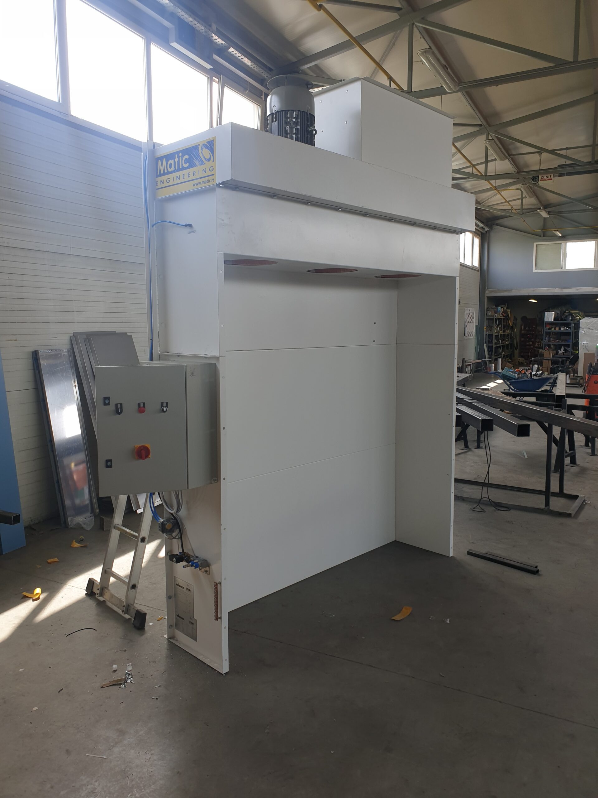 Od 2021. zvanično smo dobili lincencu za proizvodnju kabina za praškasto farbanje. Ovaj model kabina namenje je primarno za ručna farbanja, ali po zahtevu se mogu uradite različite implementacije ove kabine: poluzatvorena, prolaznog tipa, mogućnost rekuperacije praha, itd …. Ova kabina se takođe može koristiti u sistemi za ventilaciju prašine od sačmarenja u specijalnoj izradi za ovakvu upotrebu.