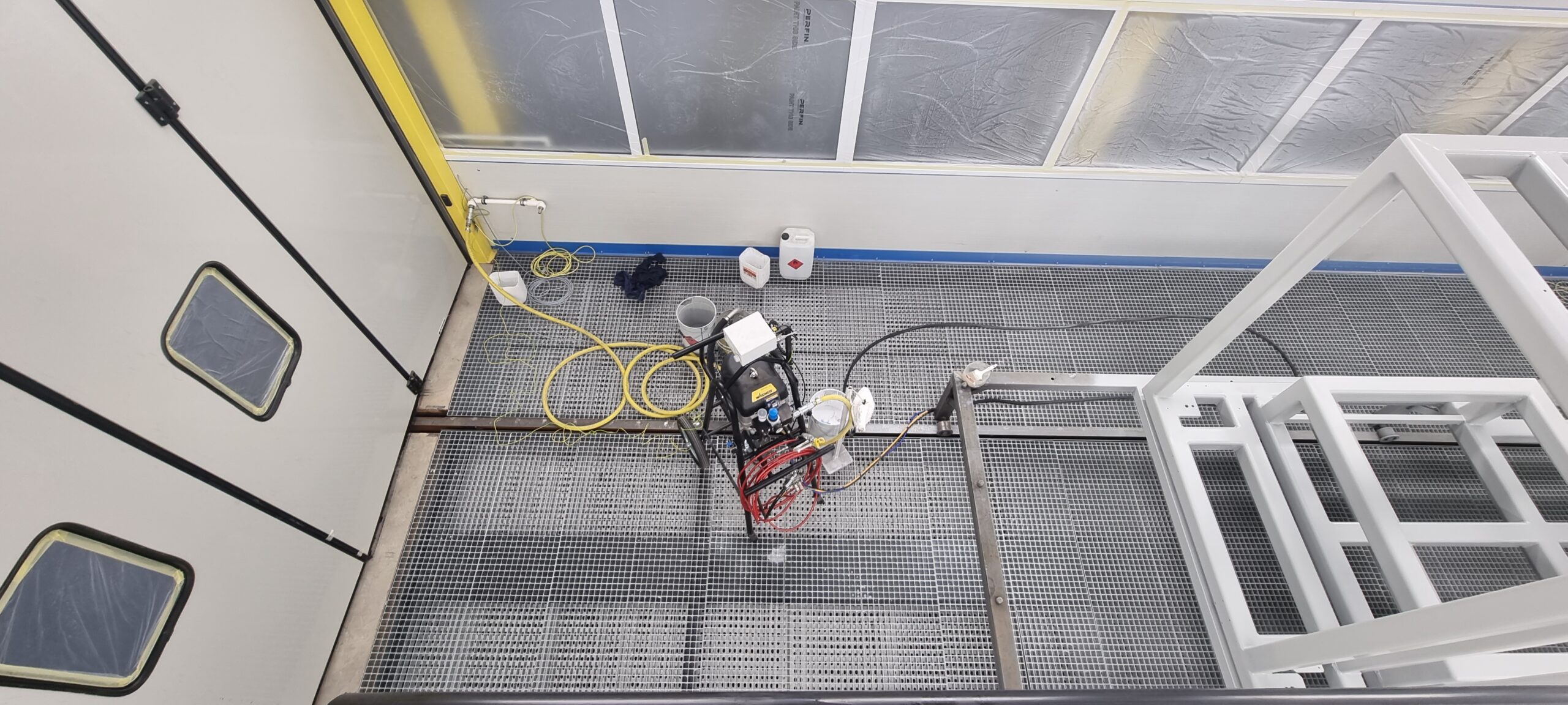Postorojenje se sastoji od dva nezavisna postrojenja. Linijsko postrojenje je namenjeno za tečne premaze i proces započinje sa hemijskom priprepom tj. odmašćivanjem površine, zatim se isti radni komad unosi u komoru za sačmarenje ( FerroCrtalic d.o.o.) gde se površina mehaničkim putem čisti od svih nečistoća. Nakon pripreme površine radni komad dolazi u kombinovanu kabinu za tečne premaze. Kabina za farbanje ima dva režima (režim farbanja i sušenja) u kojima se precizno reguliše temperatura vazduha i vlaga. Održavanje temperature u zavisnosti od spoljnih uslova se povremeno greje ili hladi kako bi se odžavala zadata temperatura u toku procesa farbanja ili sušenja. Šinskim stazama na podu i kolicima transportuju se radni komadi kroz ovu celinu. Maksimalne dimenzije su 12.0 x 5.0 x 5.0 m , i težine od 3.5 t.