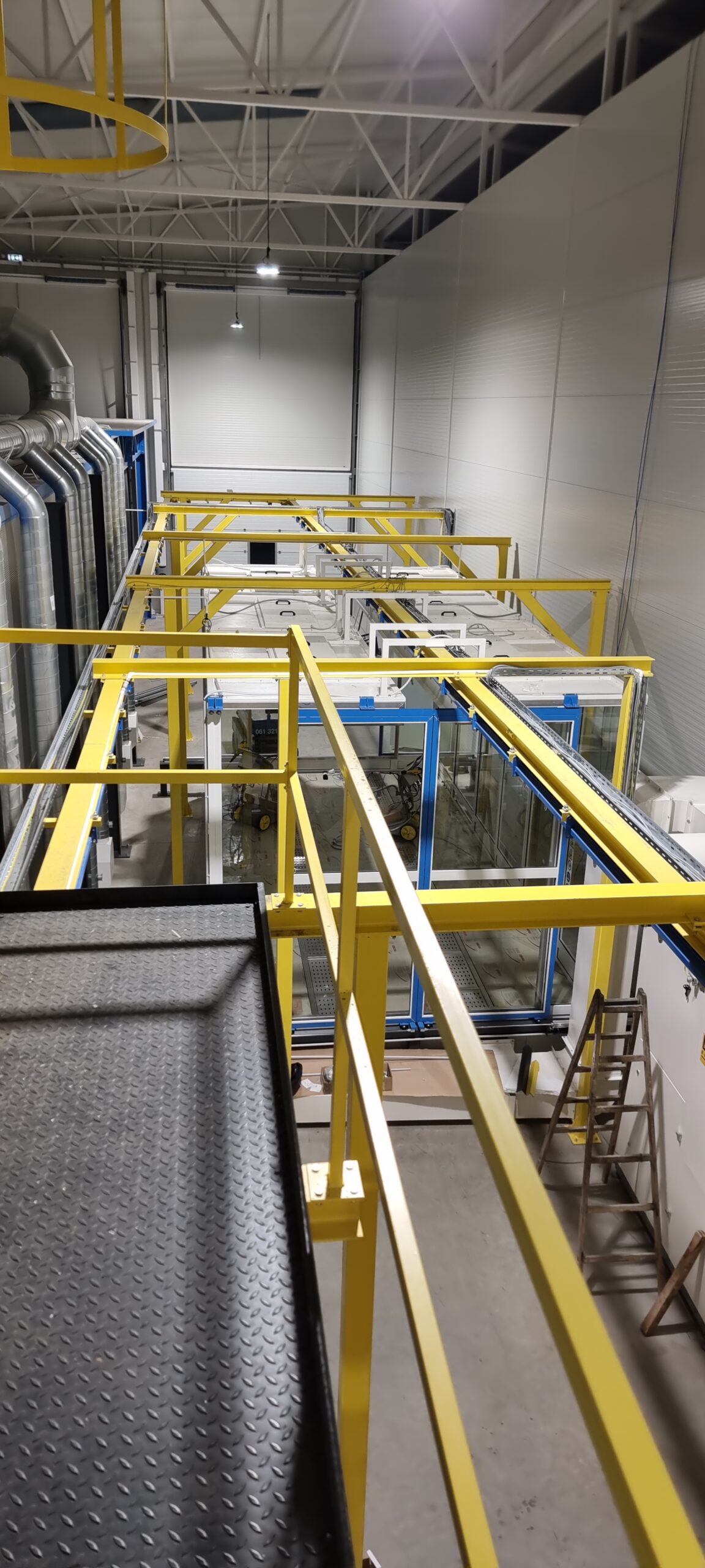 Drugi deo postrojenja čini linija za praškaste boje koja se nalazi pored. Ona je karakteristična što viseći trasnportni sistem povezuje kabinu za praškaste boje i peć za polimerizaciju. Kabina za farbanje projektovana bez sistema za rekuperaciju. I u ovoj celini proces farbanja praškastih boja realiyuje su u vremenskom intervalu tj. taktu. Maksimalne dimenzije su 7.0 x 2.2 x 2.2 m , i težine od 500 kg.